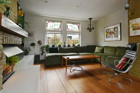 Middels de authentieke voordeur die rondom voorzien is van fraaie glas in lood ramen komt u in de ruime ontvangsthal. De vloer is afgewerkt met de originele jaren 30 keramische tegeltjes. Luxe betegelde toiletruimte voorzien van wandcloset en fontein. De woonkamer is ruim van opzet en heeft door de grote raampartijen veel lichtinval en biedt een fraai uitzicht over de knusse patiotuin.