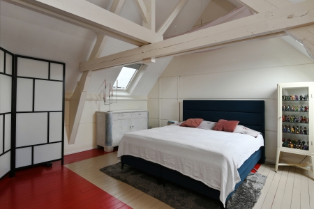 De zolderverdieping is bijzonder fraai afgewerkt. De zichtbare balken, de kapconstructie en de royale ruimte geven deze kamer een bijna loftachtige sfeer. Een heerlijke plek als master bedroom, atelier of rustige werkruimte, met volop privacy en karakter. Op deze zolderverdieping bevindt zich tevens de technische ruimte met opstelling cv-installatie.