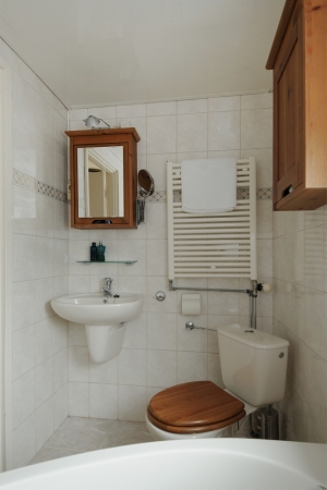 Op de eerste verdieping treft u drie keurige slaapkamers aan welke allen voorzien zijn van kunststof kozijnen met dubbele beglazing en houten parketvloer. Keurige badkamer, wit betegeld voorzien van hoekbad, design radiator, toilet en wastafel.