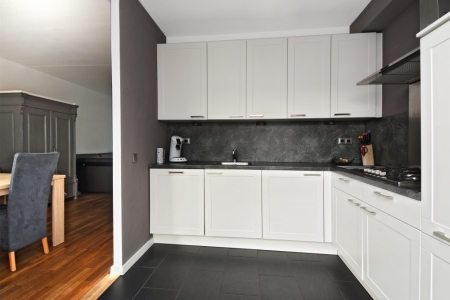 Hal met garderobe en meterkast. Leuke doorzon woonkamer met veel lichtinval en vaste inbouw kastruimte. De vloer in de woonkamer is afgewerkt met een 2cm dikke eiken vloer. Hier hoeft u uw spulletjes maar in te zetten en wonen maar. De luxe half open keuken (2015) is uitgevoerd in een lichte kleurstelling en voorzien van diverse inbouwapparatuur zoals een 5 pits gasfornuis, oven, koelkast, vaatwasser. De vloer in de keuken is afgewerkt met een fraaie antracietkleurige keramische tegelvloer. Vanuit de keuken heeft men toegang tot de fraai aangelegde tuin op het zuiden. Alle raampartijen in de woning zijn voorzien van kunststof kozijnen met HR ++ beglazing. De slaapkamers op de eerste verdieping en de ramen aan achterzijde van de woning op de begane grond zijn allen voorzien van rolluiken.