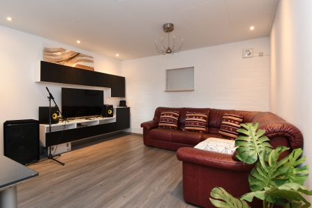 Volledig geïsoleerd bijgebouw voor vele doeleinden geschikt. Het is thans in gebruik als geluidsstudio, loungeruimte en aangrenzende kantoorruimte met keukentje. Het dak is voorzien van 16 zonnepanelen.