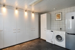 Ruime entree. Meterkast voorzien van ruim voldoende groepen en slimme meter. Badkamer voorzien van wastafelmeubel, douchecabine en hoekbad. Doorgang naar de keuken en woonkamer. Riante half open luxe keuken voorzien van diverse inbouwapparatuur zoals een magnetron, koelkast, 5 pits gasfornuis, afzuigkap en vaatwasser. Zowel de woonkamer als de keuken zijn voorzien van een teracotta kleurige kermamische vloer voorzien van vloerverwarming. In de woonkamer zorgt een houtkacheltje voor extra sfeer. Aangrenzend aan de keuken bevindt zich een ruime bijkeuken. Deze ruimte is voorzien van grote inbouw kastruimte. Luxe toiletruimte voorzien van wandcloset en fontein. Grenzend aan de woonkamer is een fraaie serre gerealiseerd. Van hieruit heeft u fantastisch uitzicht over de parkachtige tuin, De serre is voorzien van een aluminium vloerplaat en beschikt over glazen schuifwanden. Er is electrisch bedienbare zonwering aanwezig.