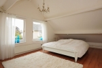 De slaapkamer op de begane grond biedt direct toegang tot de tuin. De vloer is afgewerkt met een laminaatvloer. De voormalige kleine badkamer is praktische omgebouwd tot een was- en droogruimte. Royale luxe badkamer met dubbele wastafel, douchecabine, designradiator, bidet, zwevend closet en ligbad.
